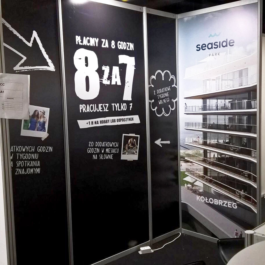 zaprojektowaliśmy i przygotowaliśmy klientowi grafiki, którymi okleiliśmy zabudowę stoiska