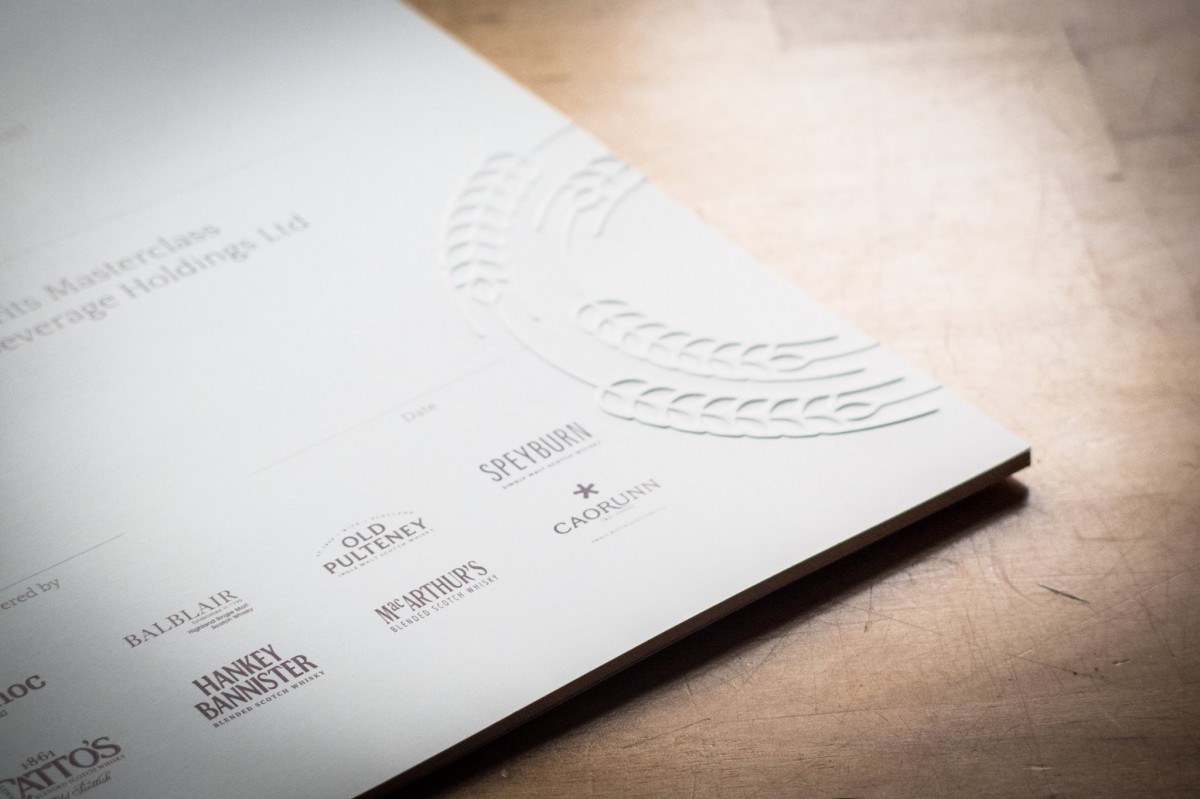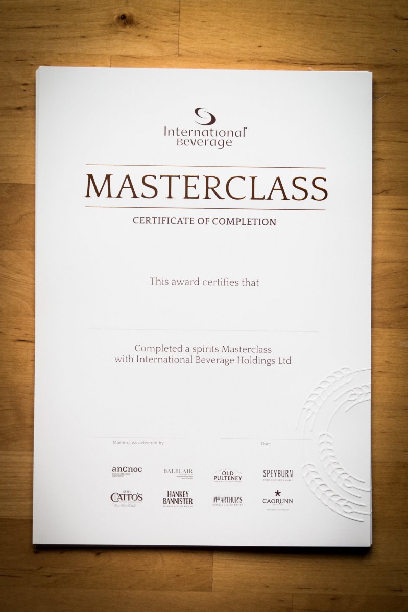 Przygotowanie projektu i wykonanie certyfikatów na szkolenia Masterclass dla jednego z czołowy producentów szkockiej whisky – Inver House Distillers, właściciela m.in. marek Balblair, Old Pulteney, anCnoc i Speyburn.
