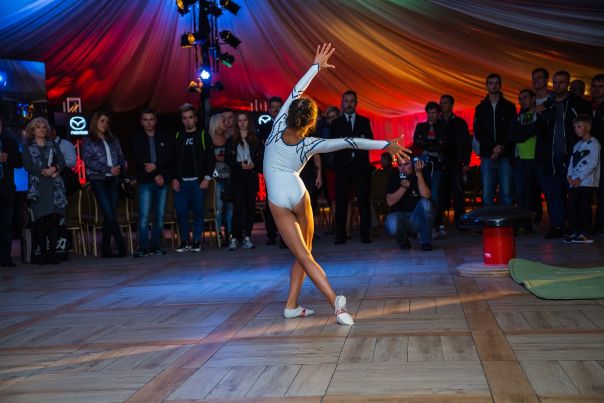 Dodatkowe atrakcje zapewnili nasi goście specjalni – artyści, gimnastycy i Marcin Gagacki, wielokrotny Mistrz Polski w rallycrosie, którzy na scenie opowiadali o aspektach swojej pracy tożsamych z filozofią Mazdy – Jinba Ittai. „Bo kiedy prowadzisz Mazdę, nigdy nie jesteś sam. Samochód i kierowca są w doskonałej harmonii. Jak koń i jeździec. Tę filozofię nazywamy „Jinba Ittai”. Wierzymy, że gdy samochód i kierowca stanowią jedność, prowadzenie staje się czystą przyjemnością.”