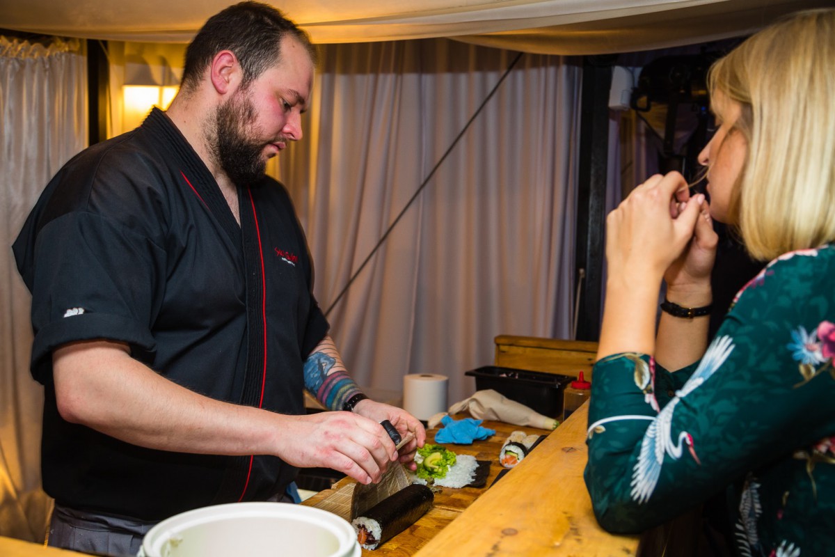 Tym razem zadaniem naszej agencji była kompleksowa organizacja eventu – od aranżacji miejsca, po jego wyposażenie, stworzenie ciekawego programu imprezy, zaproszenie gości specjalnych oraz koordynację zapraszania uczestników. Sam event podzieliliśmy na dwie części. Pierwsza to jazdy próbne ośmioma nowymi modelami Mazd, które startowały z hotelowego parkingu. Natomiast druga, bardziej uroczysta i oficjalna, to prezentacja oferty salonu mazdy, degustacja sushi oraz występy gości specjalnych, które odbywały się we wnętrzach Hotelu Pałac.